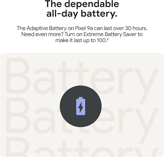| Whats in the box | 1m USB-C cable (USB 2.0), Pixel 9a Cell Phone, Quick Start Guide, Quick Switch Adapter, SIM Tray Ejector |