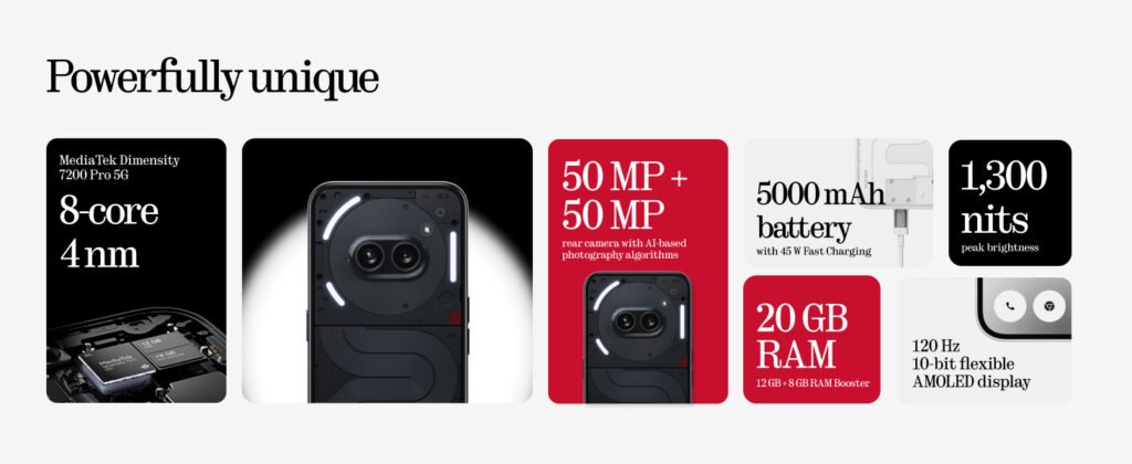 | Whats in the box | Nothing Cable (c-c), Nothing Phone (2a), Phone (2a) Screen Protector (pre-applied), SIM Tray Ejector, Safety information and warranty card |