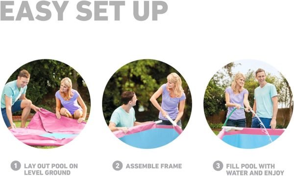 Easy Summer Fun: Ready for water in just 30 minutes; spread out on level ground, preferably on top of the ground cloth, setting the metal frame with our innovative composite T-joint design makes assembly quick and easy